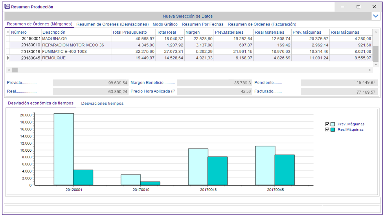 maquinaria-Tablero de abordo-Comparativa Tiempos