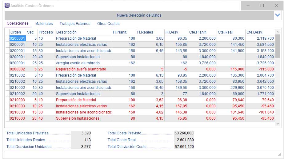 instalaciones electricas-analisis costes ordenes