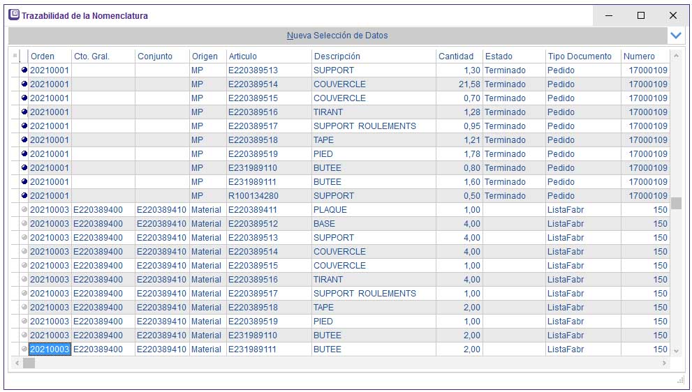 maquinaria-trazabilidad de la nomenclatura