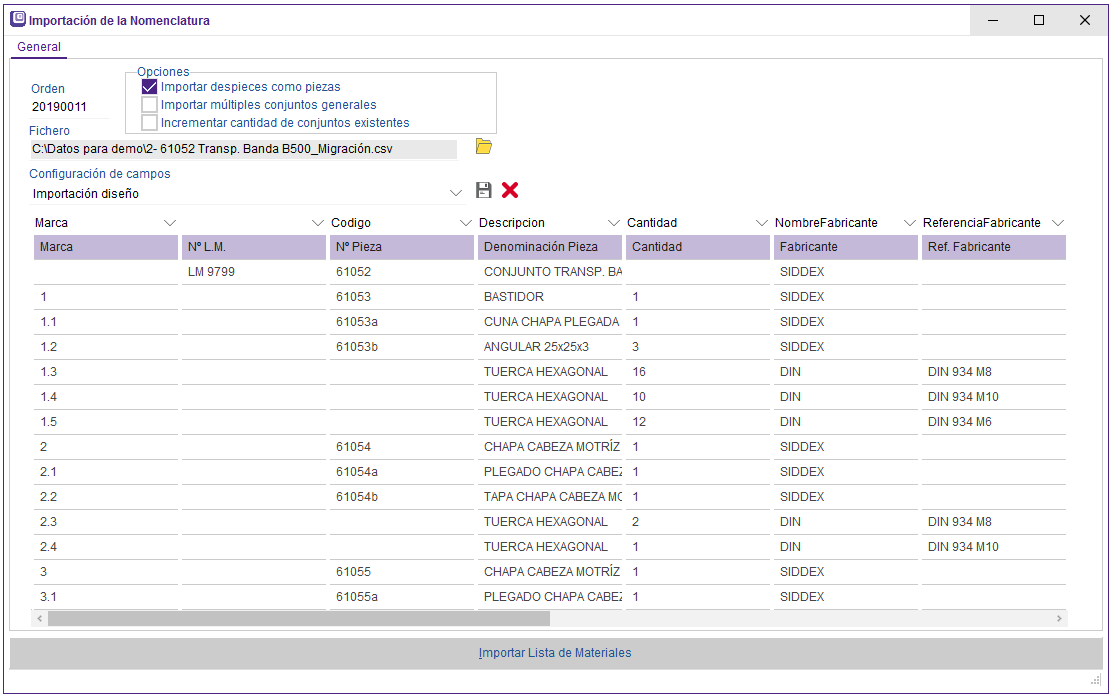 siddex erp maquinara importancion nomenclatura cad oficina tecnica diseño