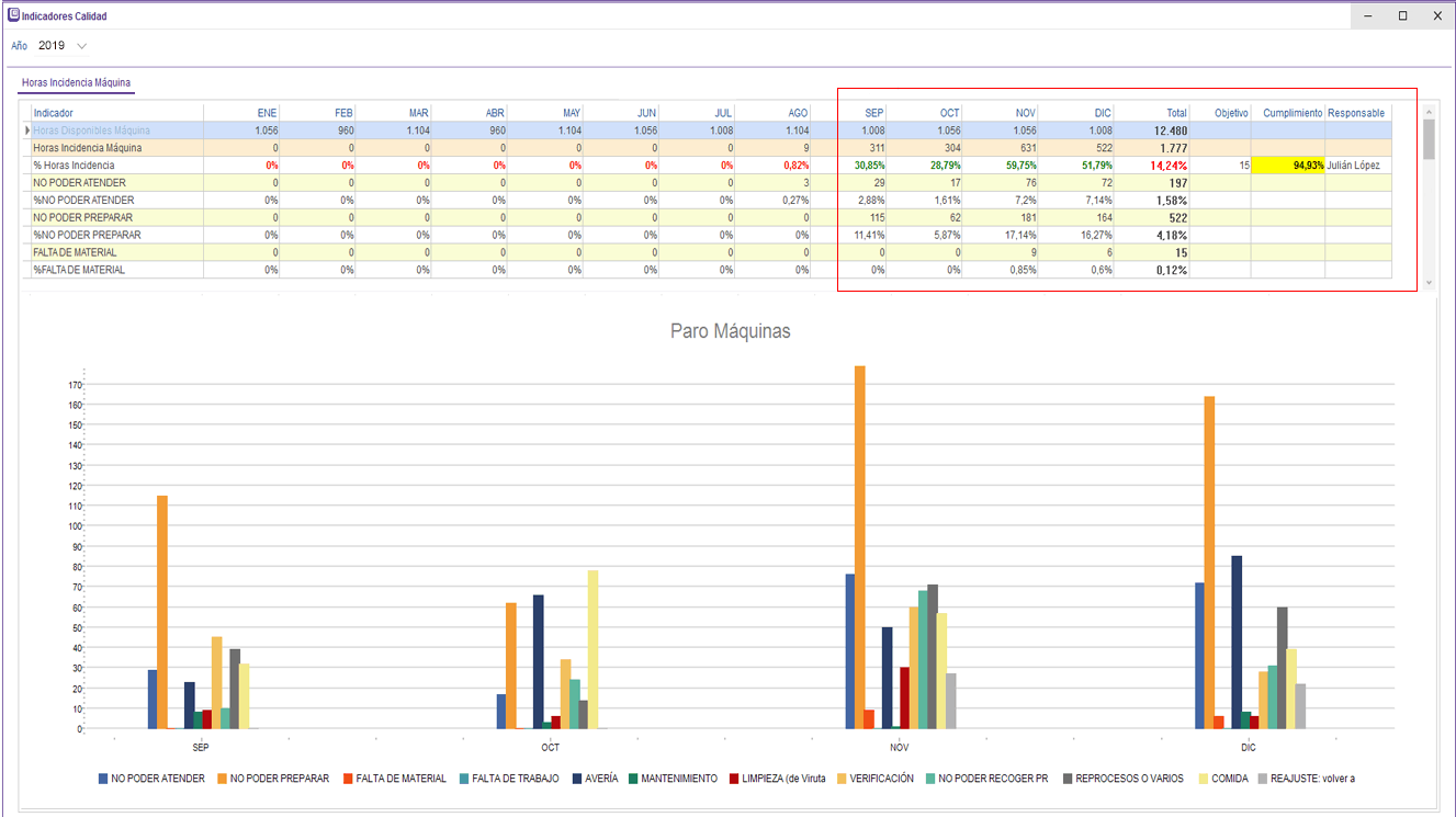 INDICADORES INCIDENCIAS HORAS MAQUINAS BI