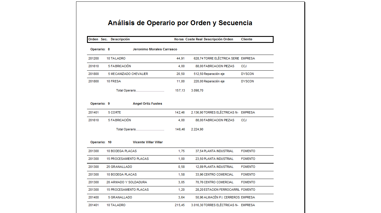ANALISIS DE OPERARIO POR ORDEN Y SECUENCIA