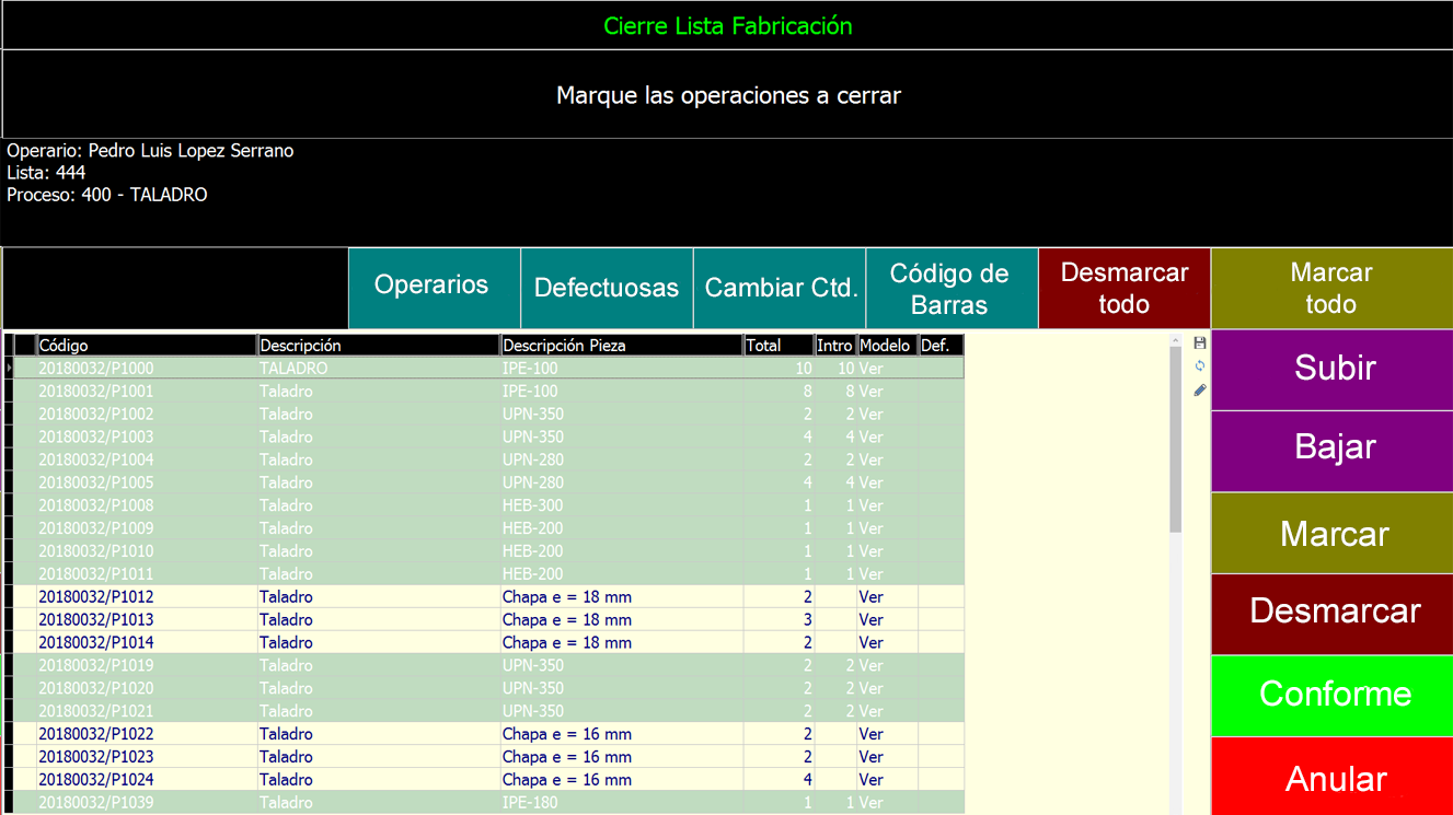 CALDERERIA CONTROL PRODUCCION